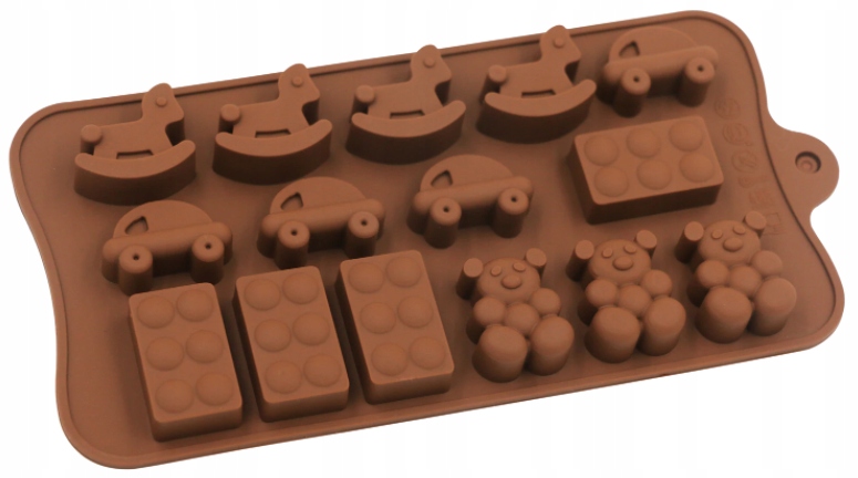 Forma silikonowa do czekoladek klocki, konik, auto i miś. Idealna do czekoladek, galaretek i dekoracji cukierniczych. Wysoka jakość, odporna na temperatury!