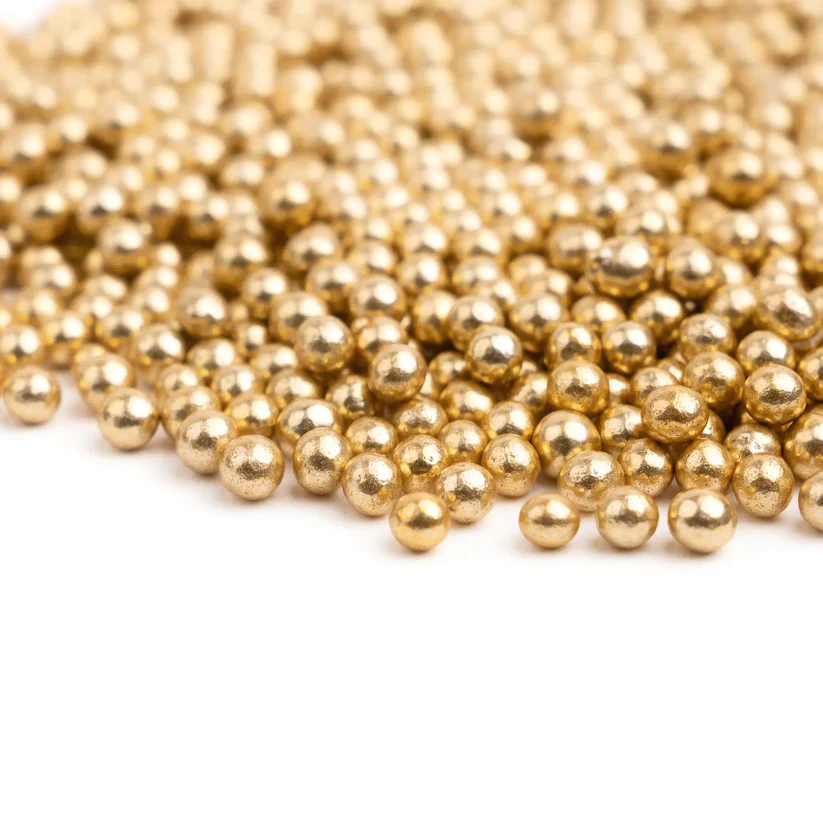 Posypka dekoracyjna Old Gold Sugar Pearls to kwintesencja elegancji i klasyki. ✨ Ich wyjątkowe złote wykończenie w odcieniu postarzanego złota oraz idealnie okrągły kształt dodają wyrafinowanego blasku każdej słodkości – od tortów weselnych, przez makaroniki, aż po praliny i inne delikatne wypieki.
