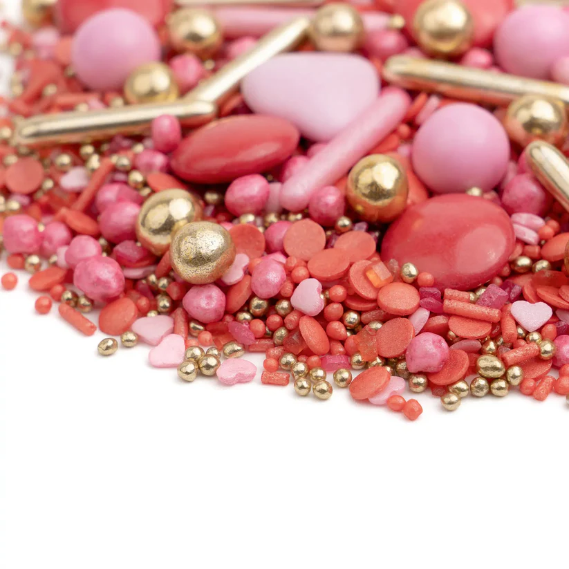 Posypka dekoracyjna Valentino Red to wyjątkowa, pełna pasji mieszanka, która doda Twoim wypiekom spektakularnego wyglądu! ❤️ Intensywne odcienie czerwieni i różu w połączeniu z eleganckimi złotymi detalami sprawiają, że każdy deser nabierze luksusowego charakteru.