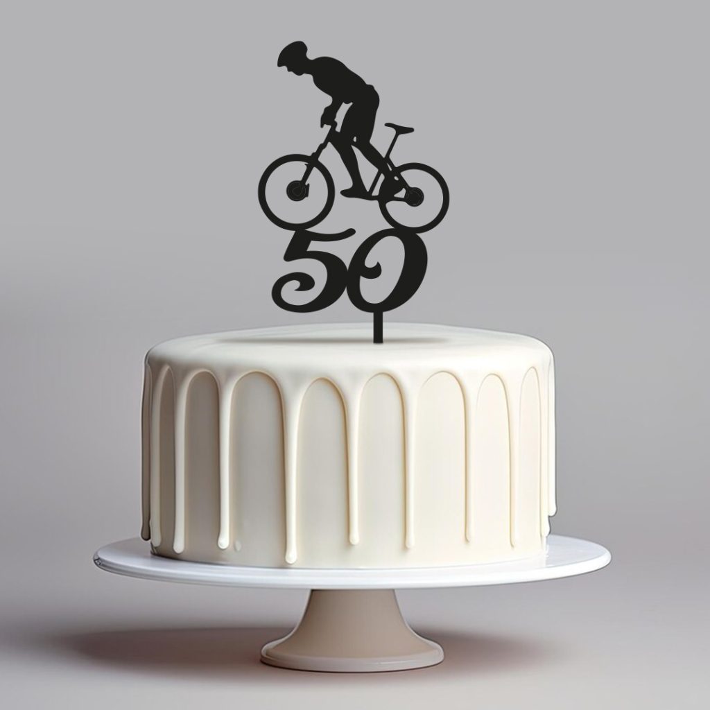 Topper na tort rowerzysta z dowolną liczbą | Nowoczesna Dekoracja Tortu