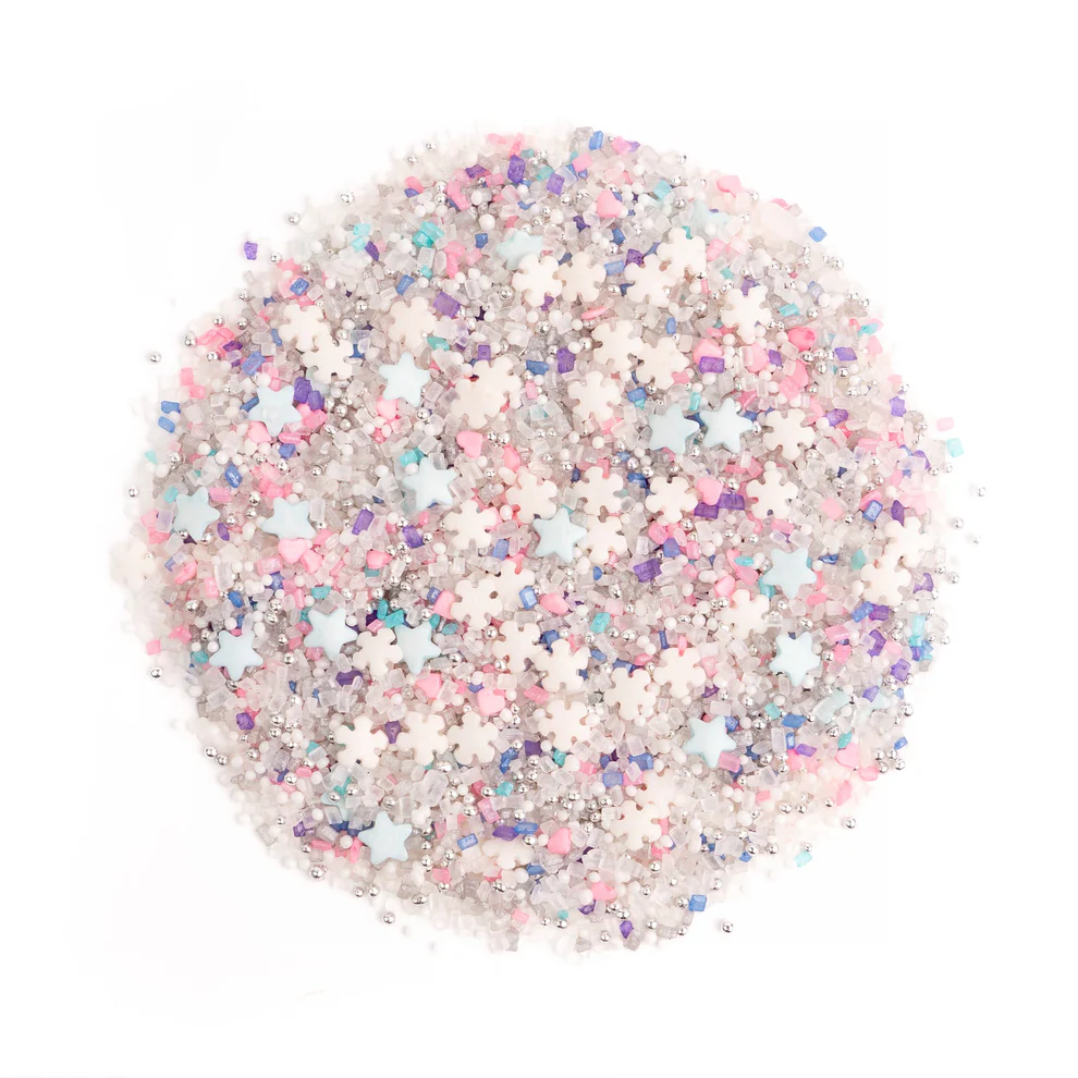 Posypka Świąteczna Wonderland 90g w odcieniach bieli, różu i fioletu. Nadaj swoim wypiekom bajkowy, zimowy charakter.