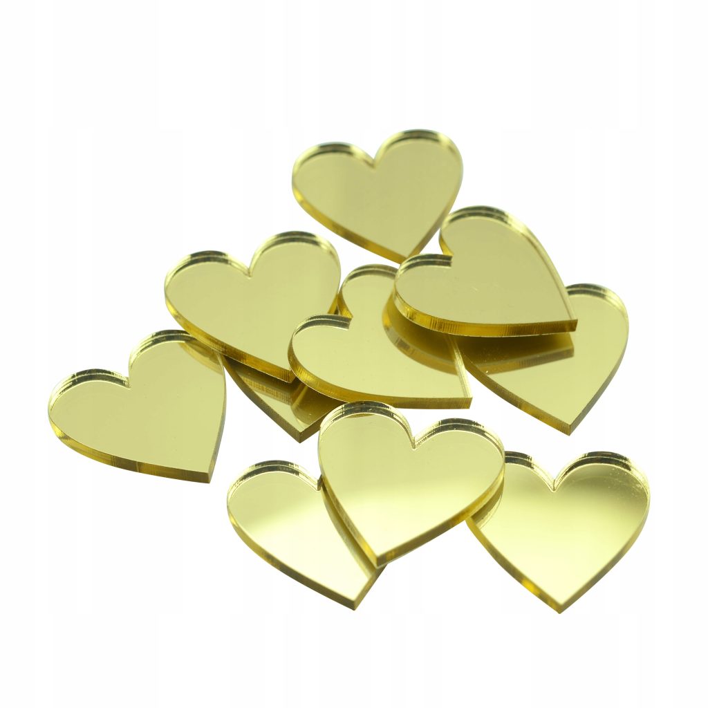 Złote lustrzane serca z plexi 2x2cm – 10szt